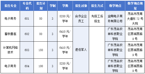 教学地点:试点专业退役军人教学点(详见招生计划表)