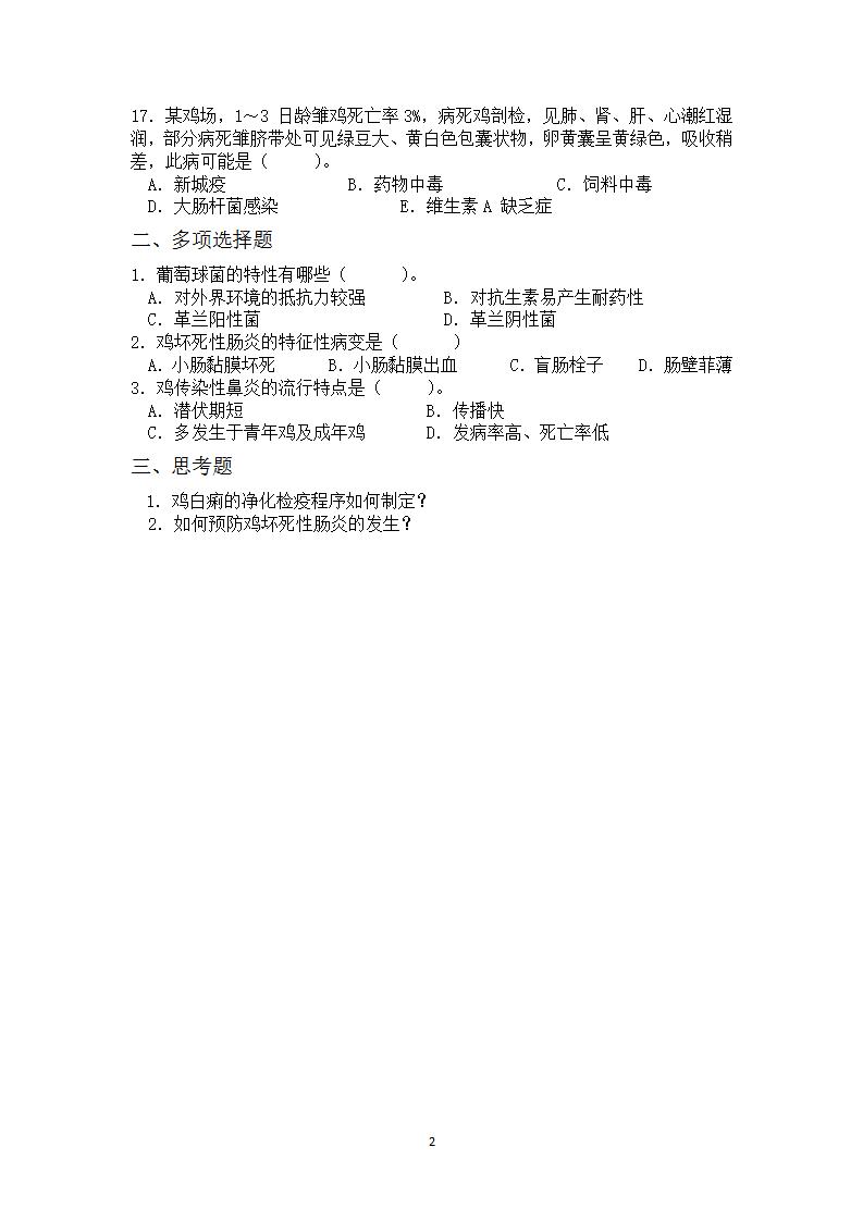 子项目二 细菌性传染病 习题.doc